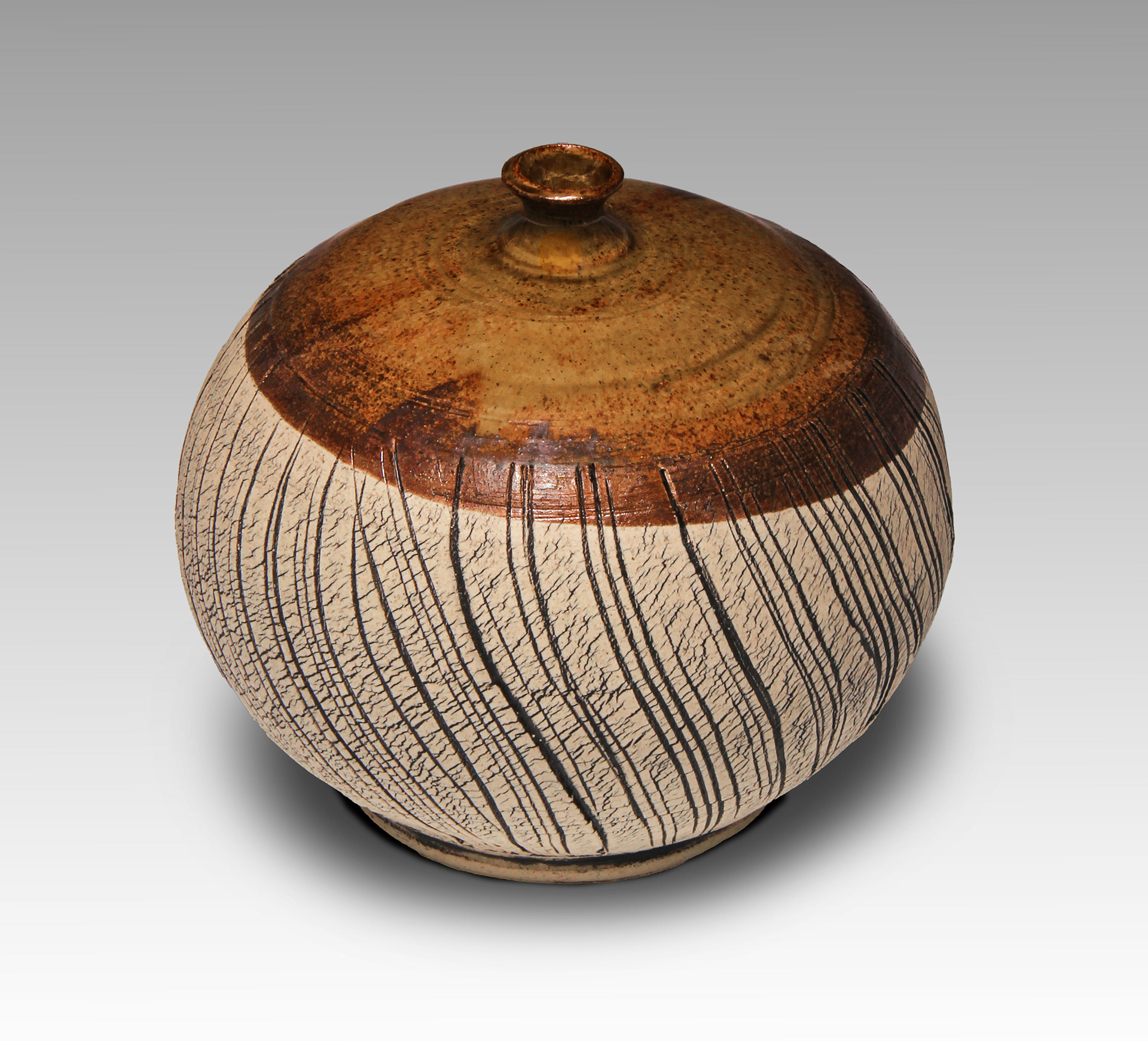 Textured stoneware with black oxide wash, 4.75" tall.