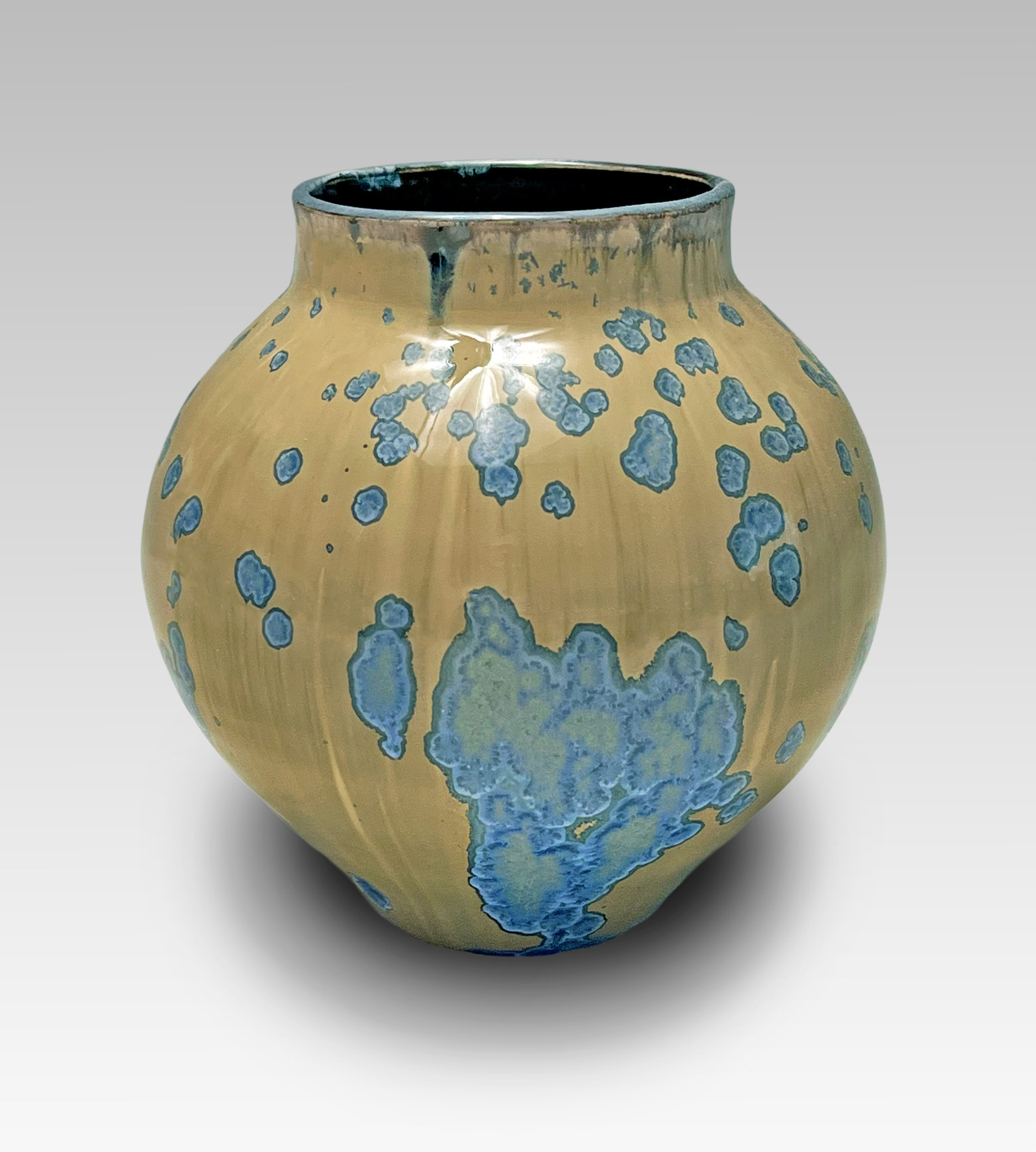 Stoneware with crystalline glaze, 5" tall.