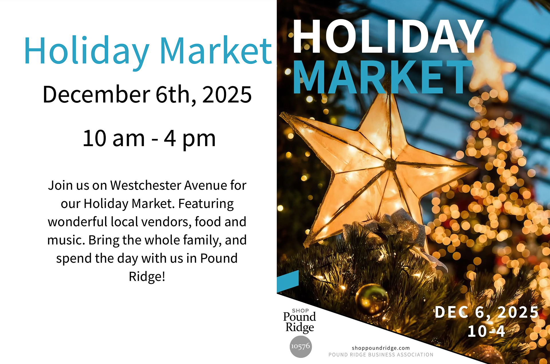 I'll be at KATONAH ELEMENTARY and POUND RIDGE HOLIDAY MARKET