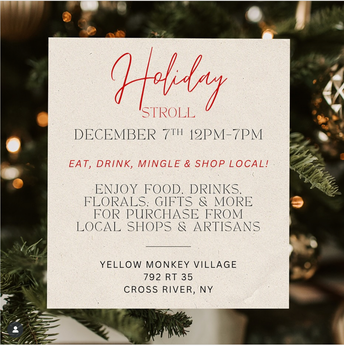 Sunday: YELLOW MONKEY VILLAGE HOLIDAY STROLL, 12–7pm